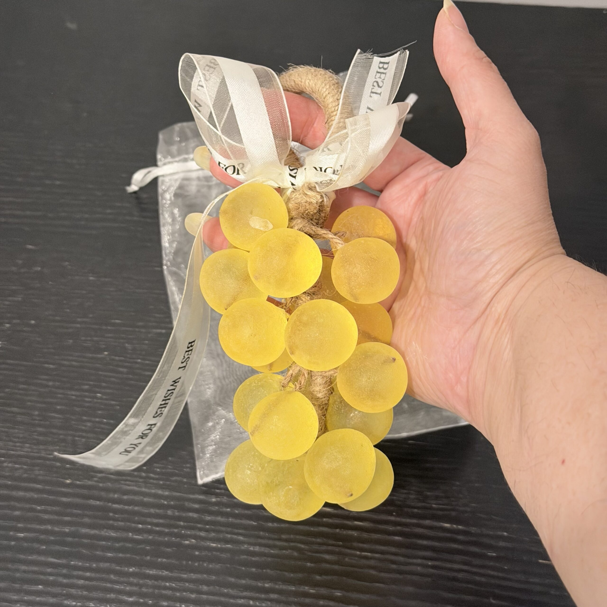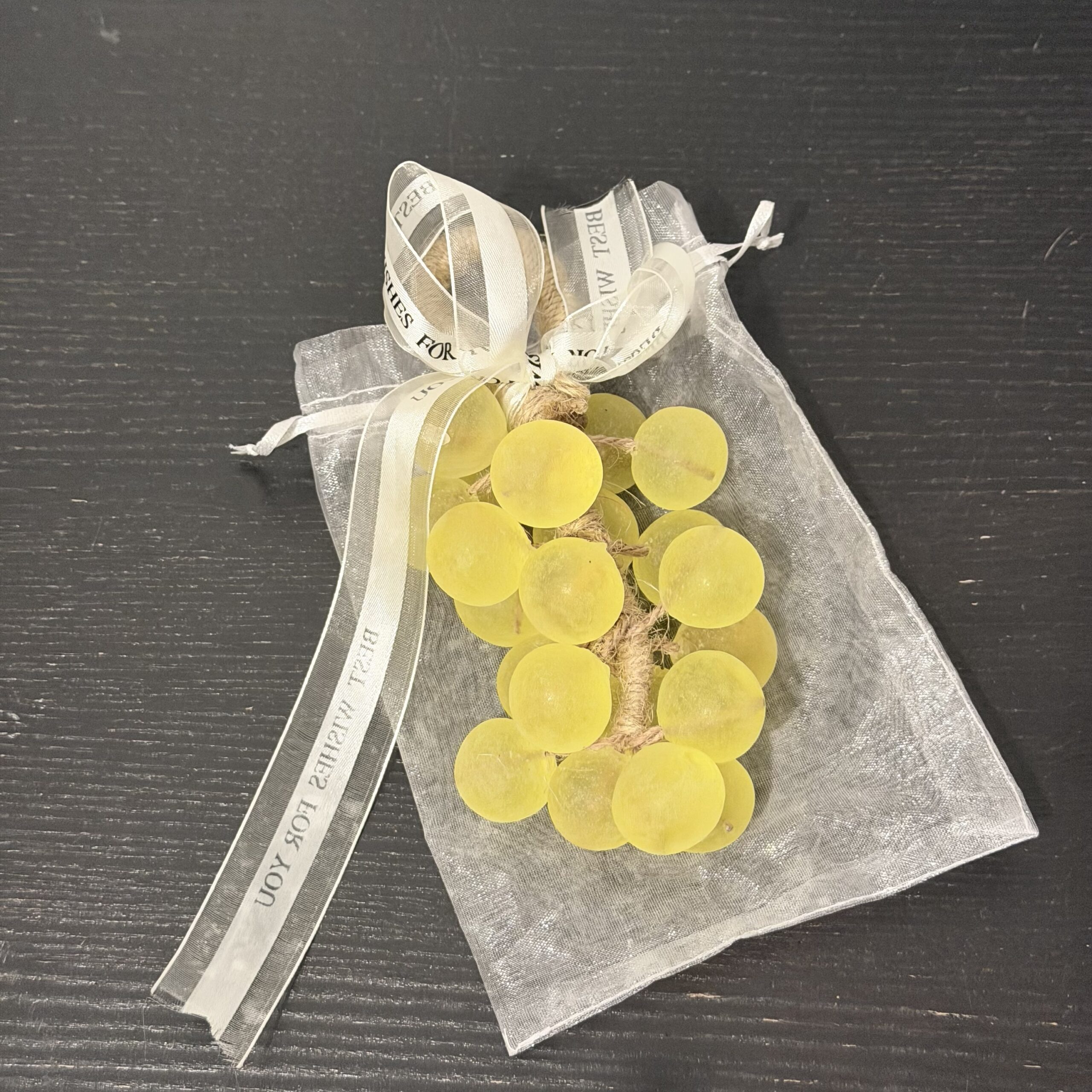 Handcrafted clear grape-shaped soap with crystal-style finish