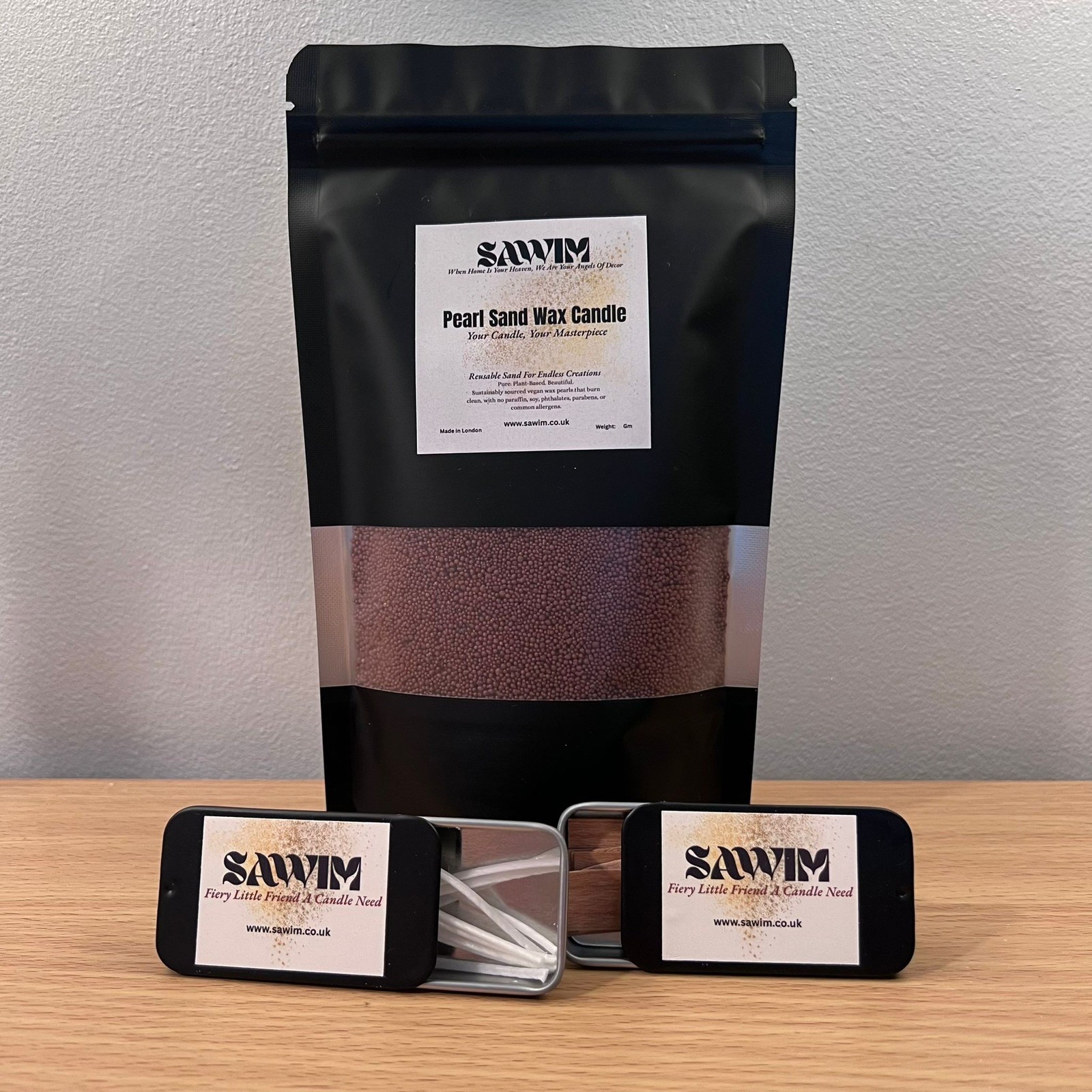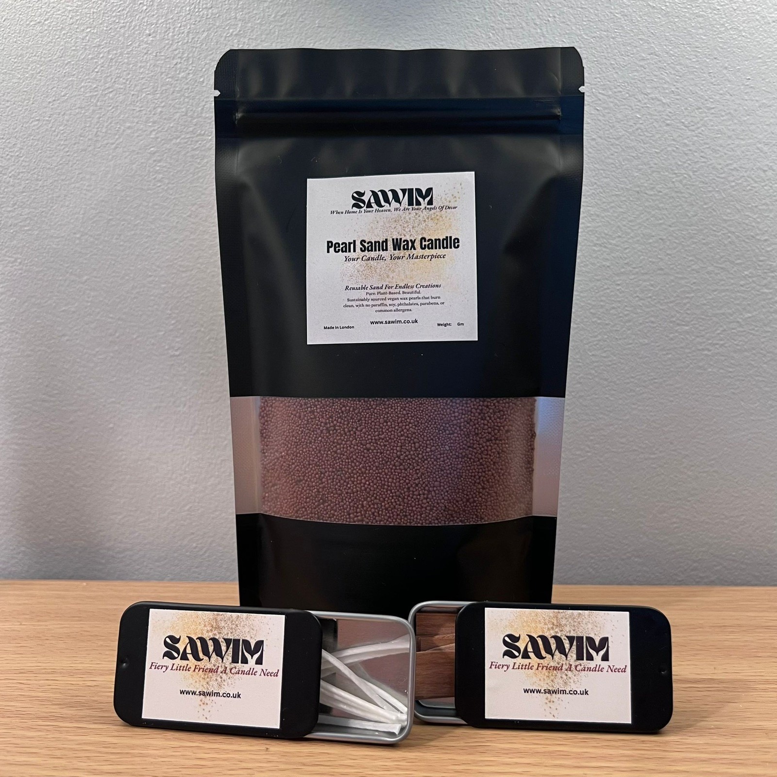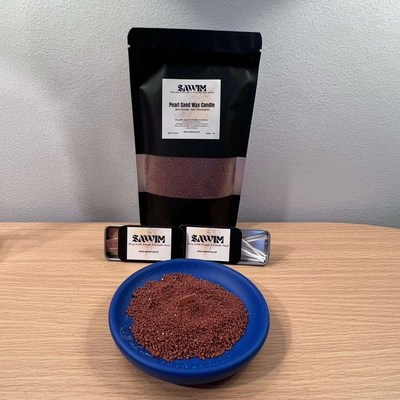 SAWIM Brown Pearl Sand Wax Candle 100g & 5 Cotton Wicks Reusable DIY Kit Candle