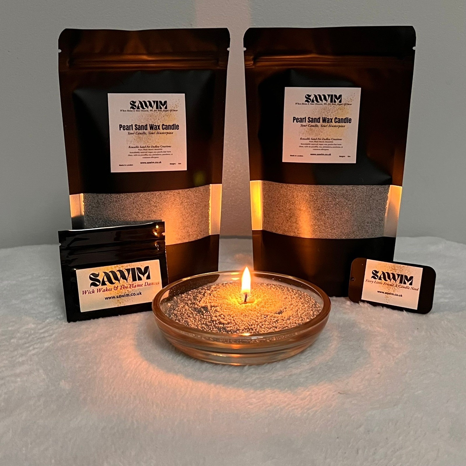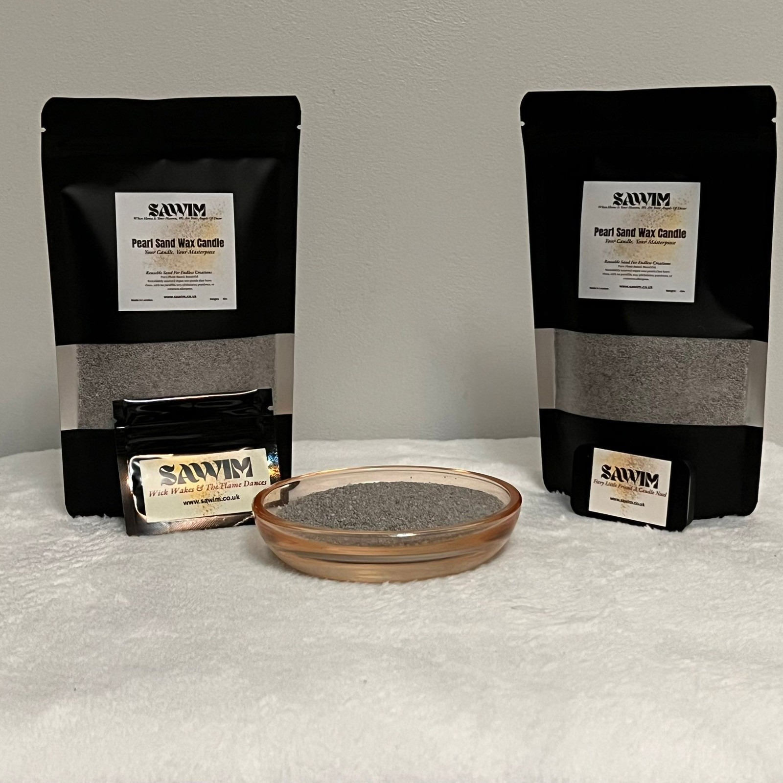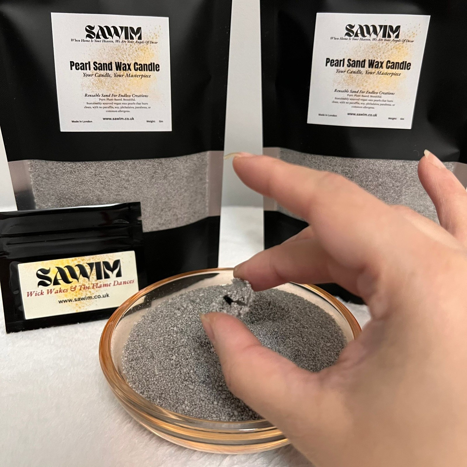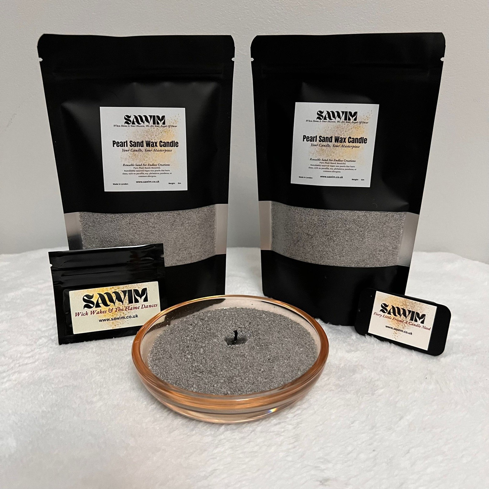 Instantly craft a minimalist, sustainable, and customizable candle centerpiece with the SAWIM Grey Pearl Sand Wax DIY Kit