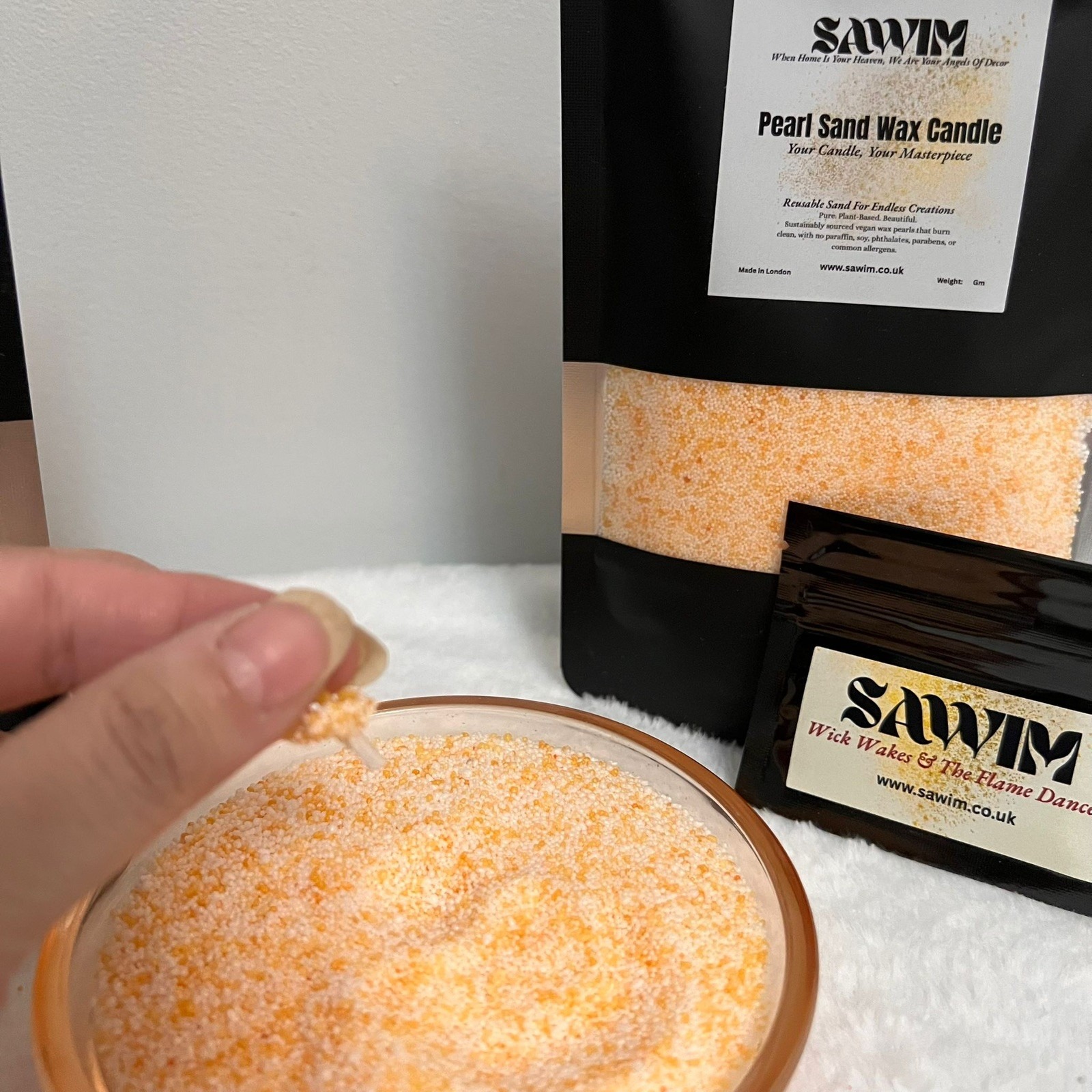 SAWIM Pearl Sand Wax Candle 100g & 5 Wicks Vegan Eco Reusable DIY Candle Orange