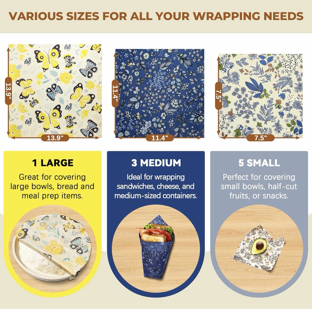 ✔ 3 Medium Wraps – 11.5” x 11.5”