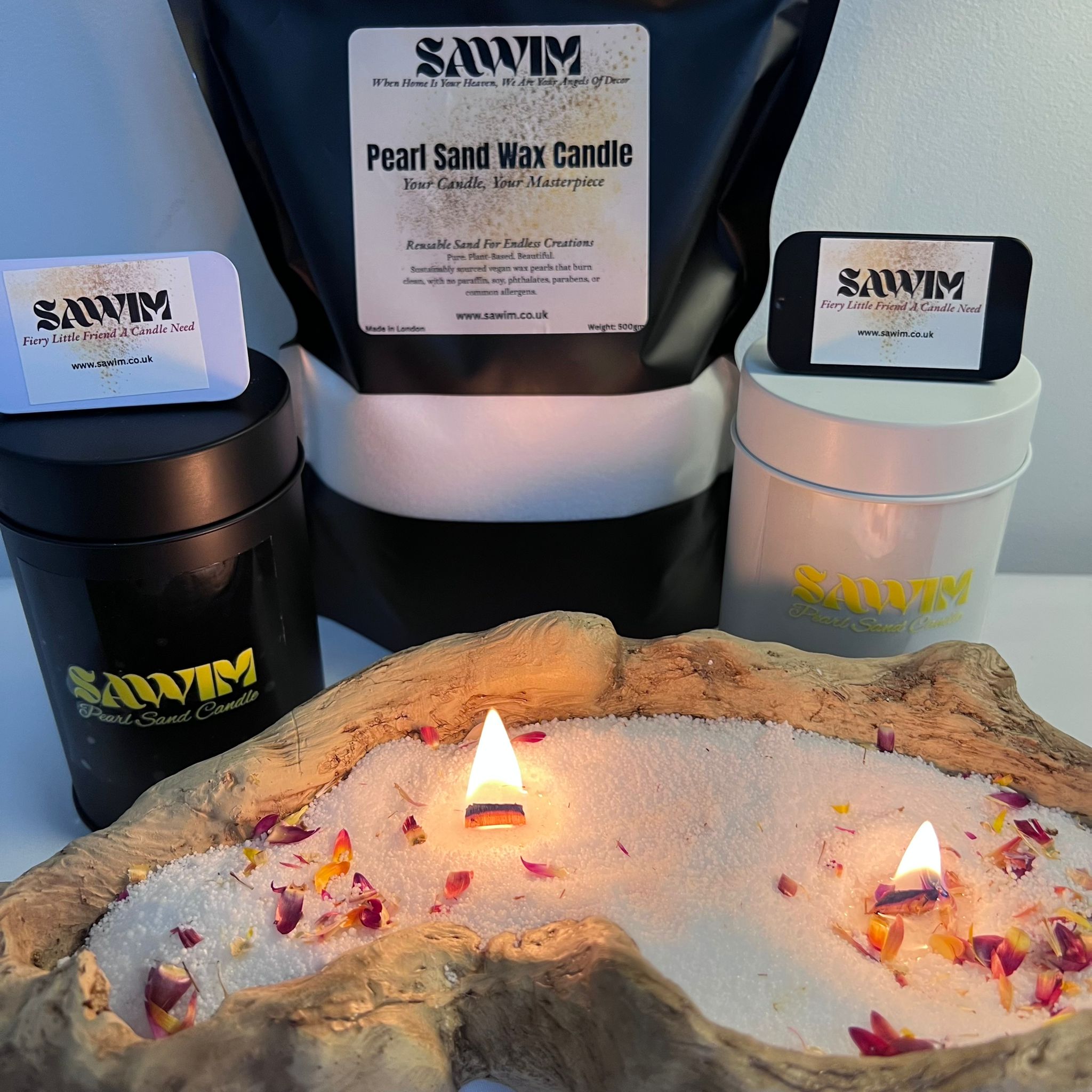 Fill your vessel with pearl sand wax granules, leaving at least 1 inch of space at the top.